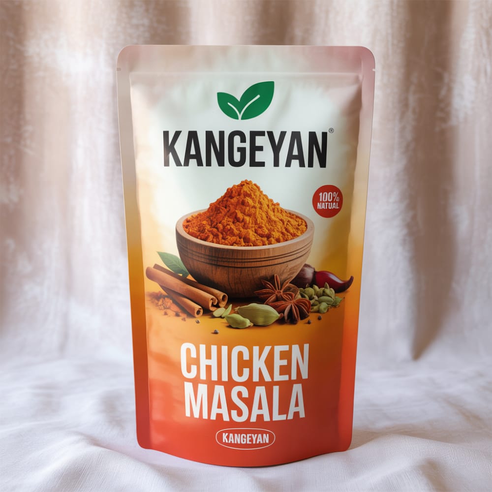 Homemade Kangeyan Chicken Masala is a treasured family recipe passed down through generations, blending freshly ground South Indian spices to create an authentic Kongu-style chicken dish. Made with love in small batches using traditional methods, this aromatic masala captures the true essence of Tamil Nadu home cooking. Each blend reflects the warmth and authenticity of home-cooked meals, bringing generations of culinary wisdom to your family table.